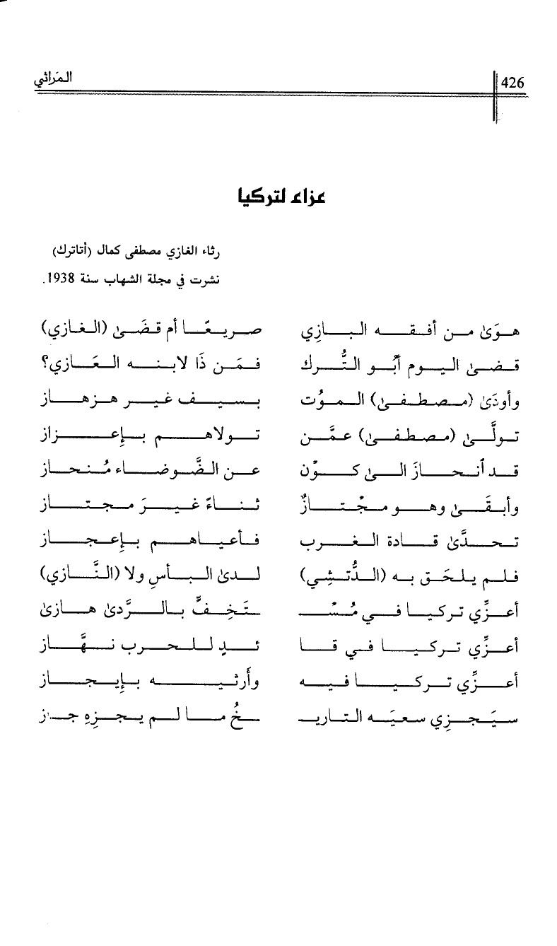 رثاء الغازي مصطفى كمال (أتاترك).