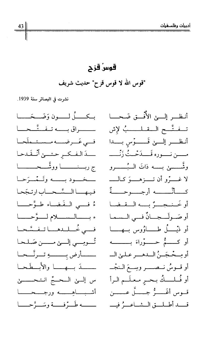 أنظر إلى قوس بدا …*… في عرضه مستملحا