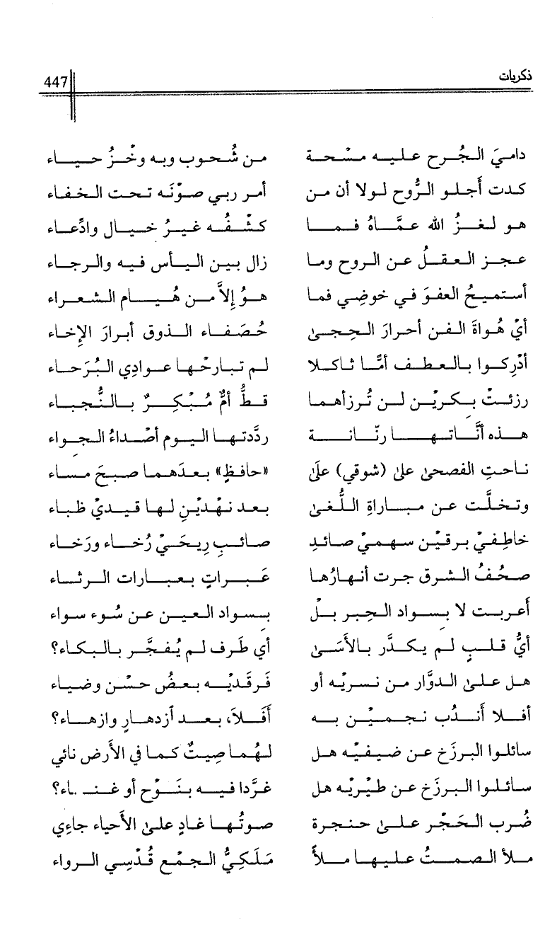 دامي الجرح عليه مسحة …*… من شحوب وبه وخز حياء