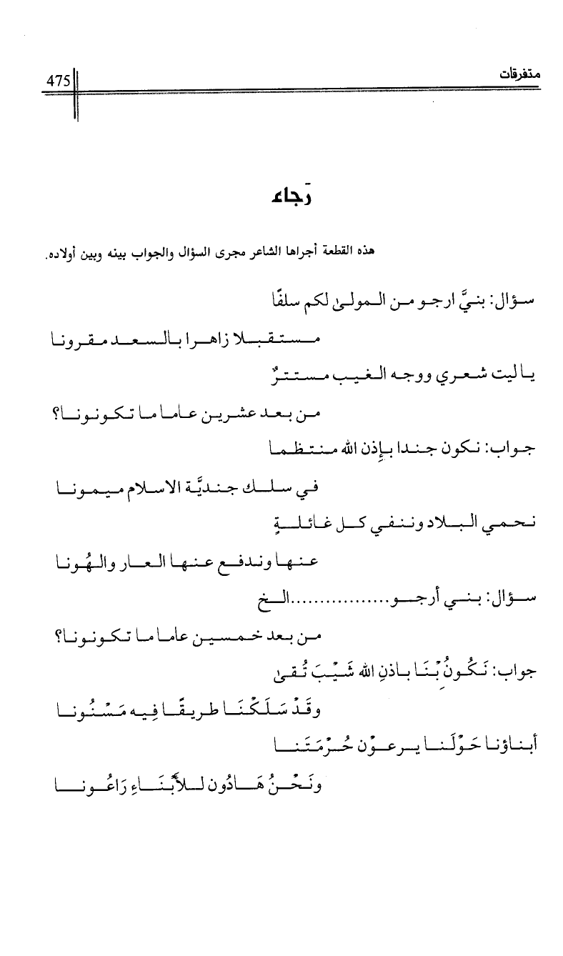 هذه القطعة أجراها الشاعر مجرى السؤال والجواب بينه وبين أولاده.