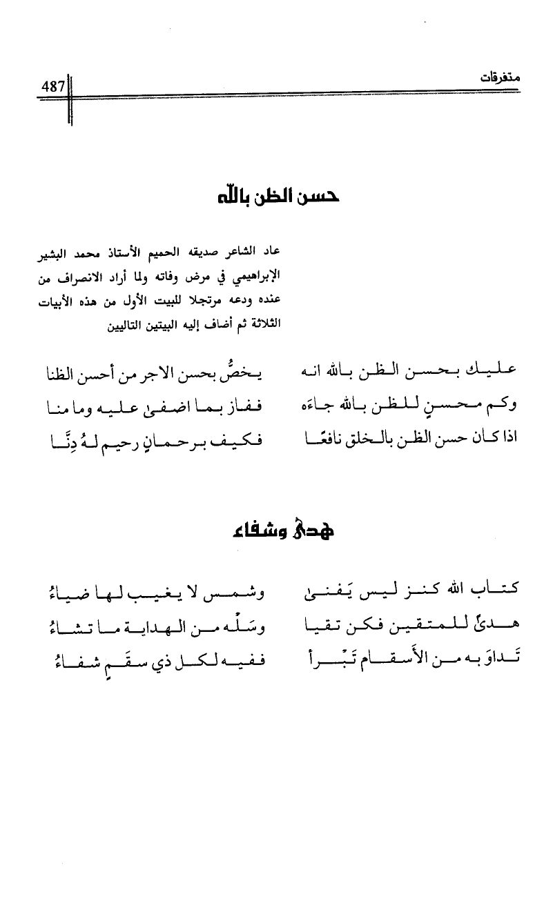 اذا كان حسن الظن بالخلق نافعا …*… فكيف برحمان رحيم له دنا