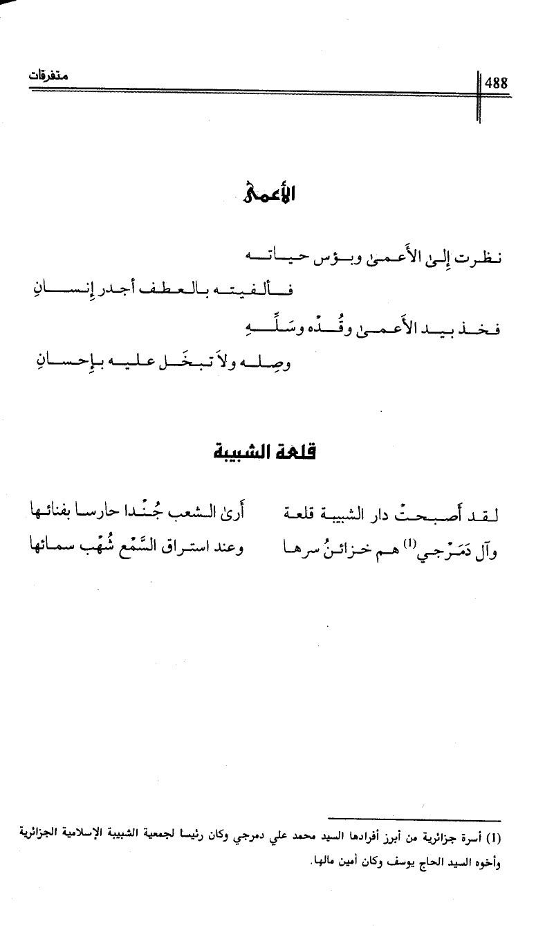 نظرت إلى الأعمى وبؤس حياته …*… فألفيته بالعطف أجدر إنسان