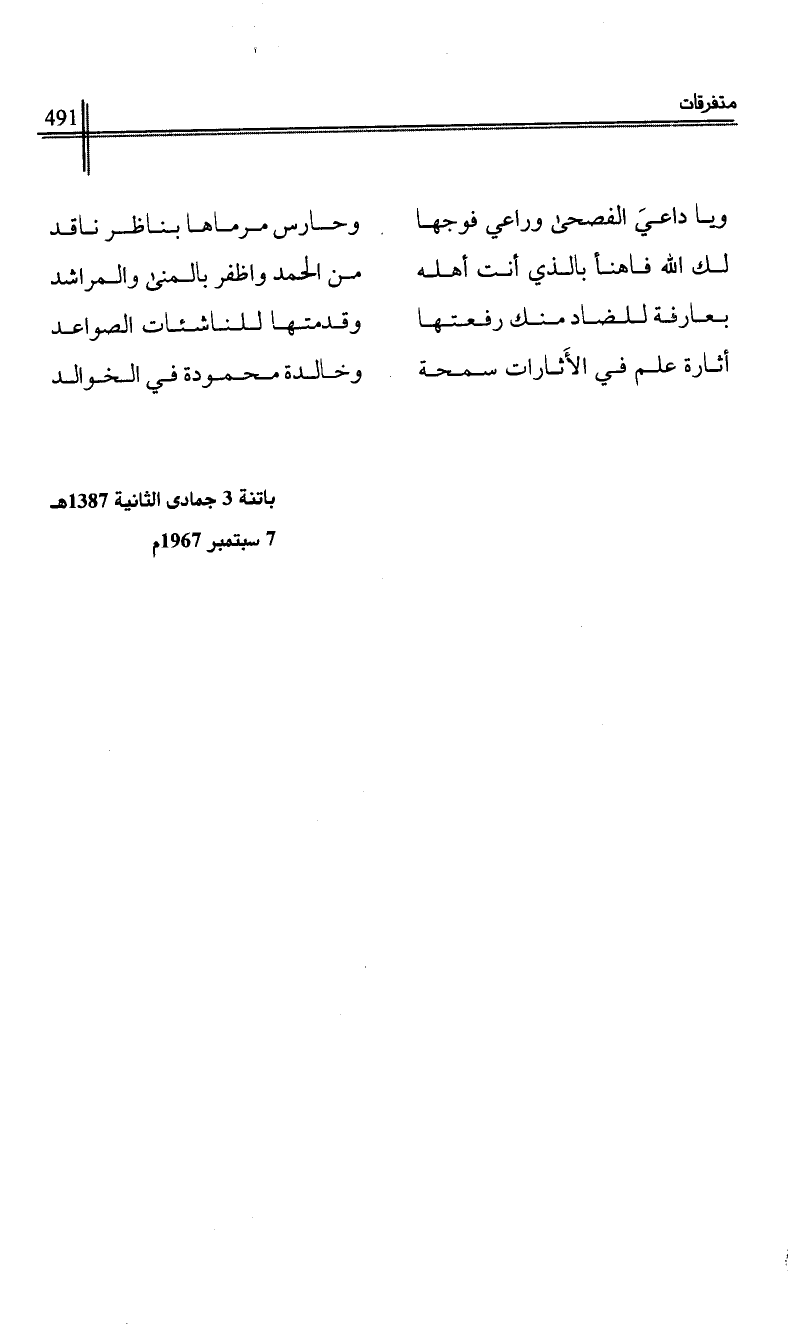 بعارفة للضاد منك رفعتها …*… وقدمتها للناشئات الصواعد