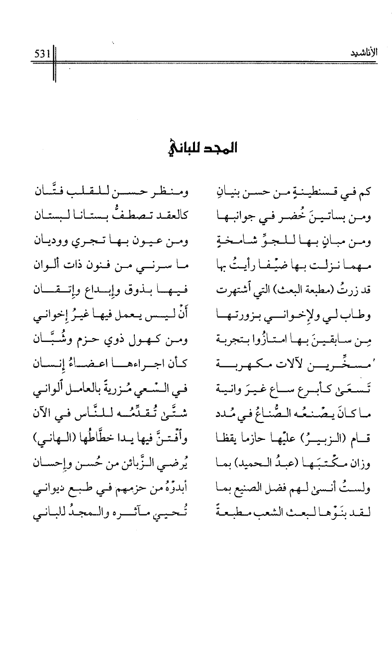 قد زرت (مطبعة البعث) التي اشتهرت …*… فيها بذوق وإبدل وإتقان