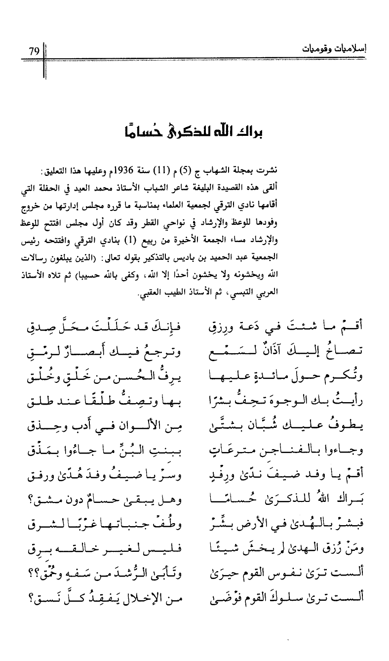 نشرت بمجلة الشهاب ج (5) م (11) سنة 1936م وعليها هذا التعليق: