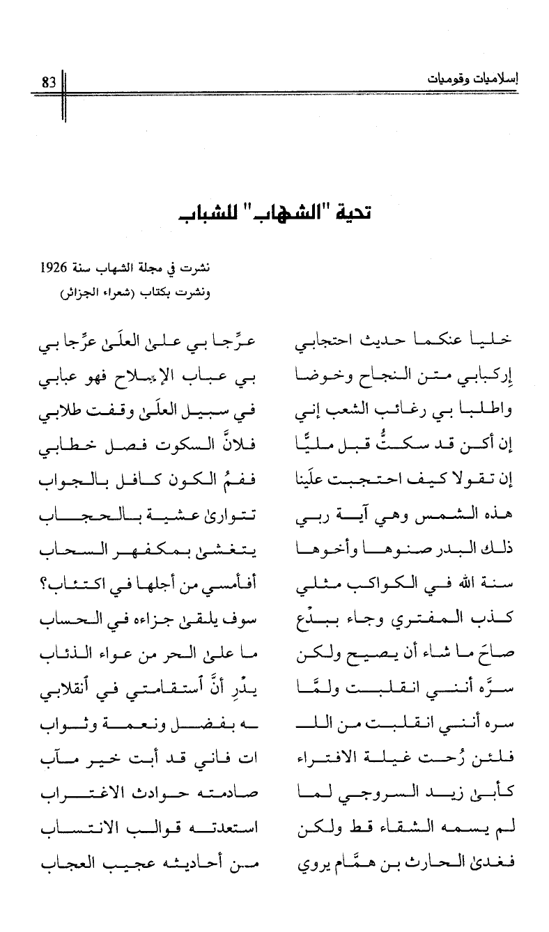 واطلبا بي رغائب الشعب إني …*… في سبيل العلى وقفت طلابي