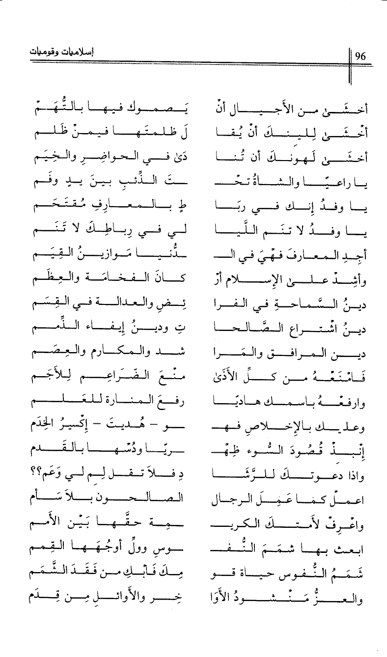 وأشد على الإسلام أر …*… كان الفخامة والعظم