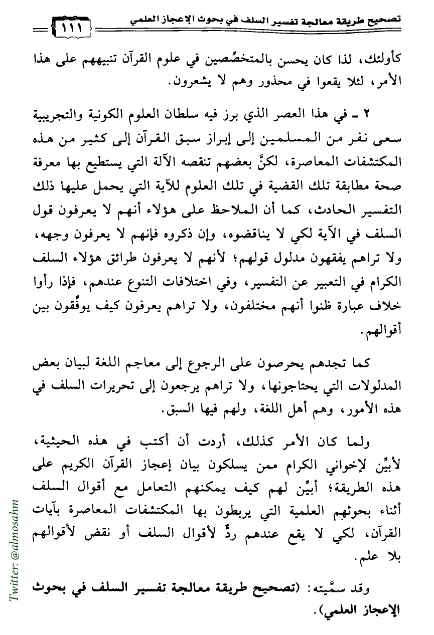 وقد سمَّيته: (تصحيح طريقة معالجة تفسير السلف في بحوث الإعجاز العلمي).