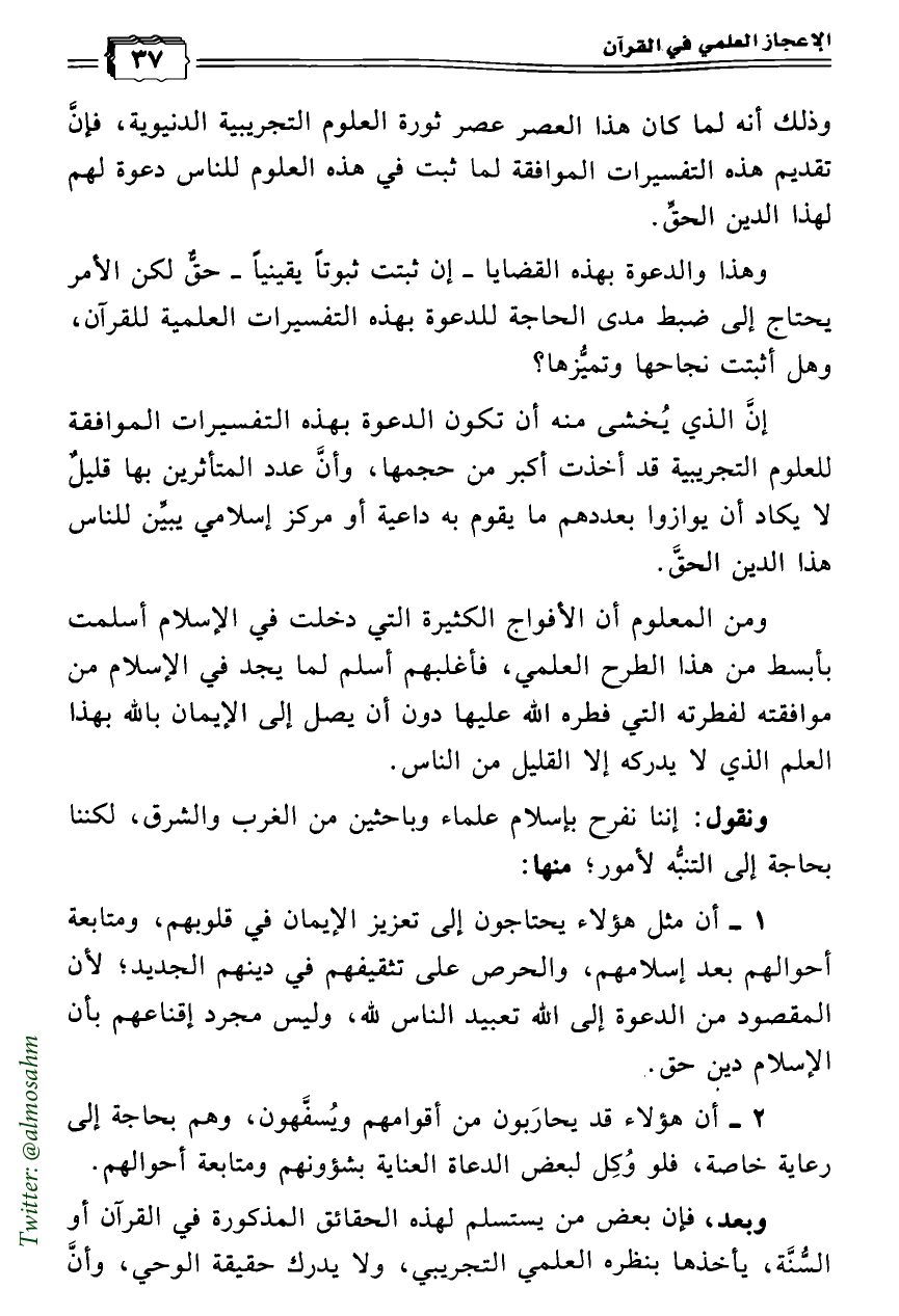وهذا والدعوة بهذه القضايا ـ إن ثبتت ثبوتاً يقينياً ـ حقٌّ لكن الأمر يحتاج إلى ضبط مدى الحاجة للدعوة بهذه التفسيرات العلمية للقرآن، وهل أثبتت نجاحها وتميُّزها؟