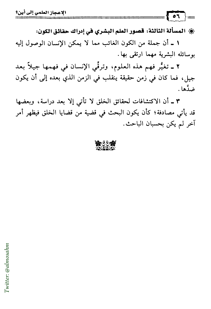 المسألة الثالثة: قصور العلم البشري في إدراك حقائق الكون: