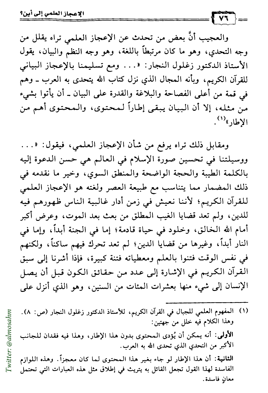 (¬1) المفهوم العلمي للجبال في القرآن الكريم، للأستاذ الدكتور زغلول النجار (ص: 8). وهذا الكلام فيه خلل من جهتين:
