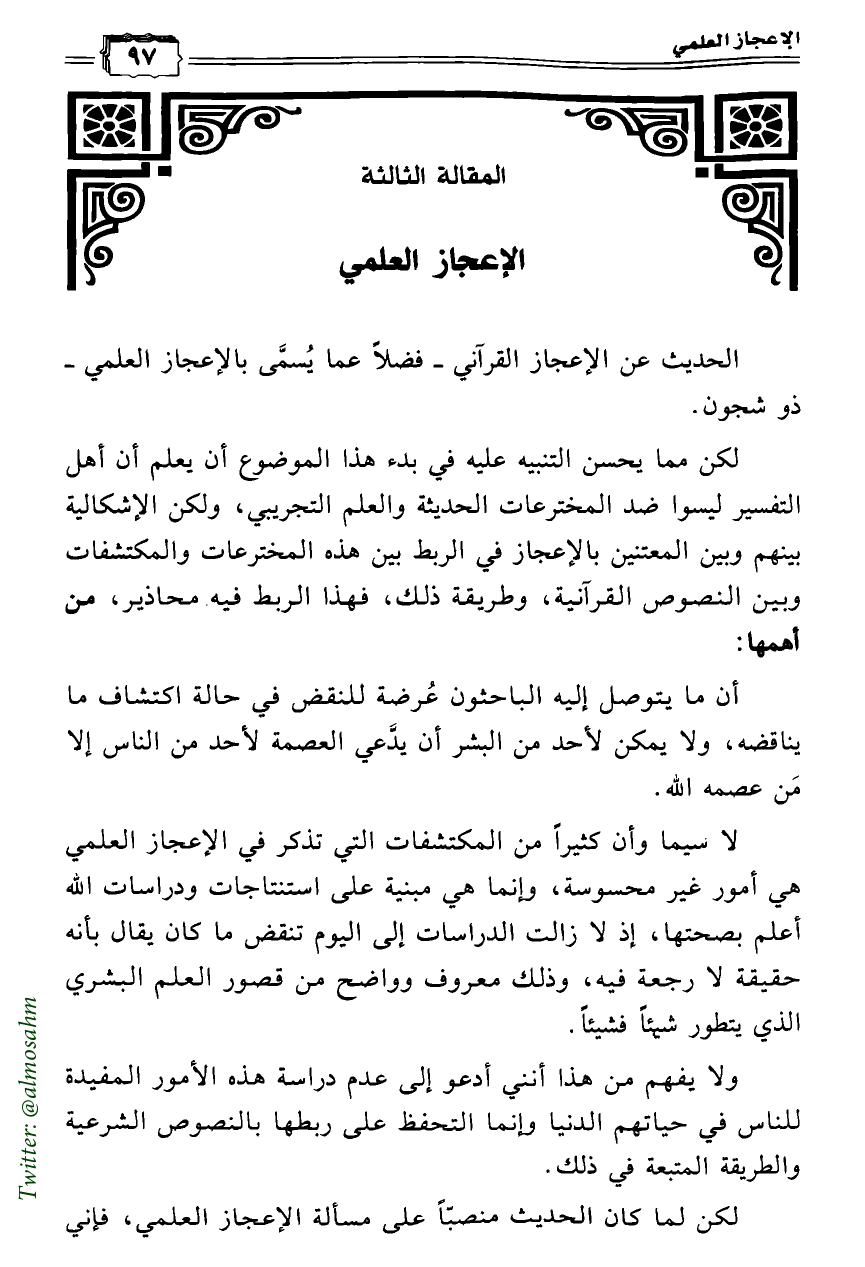 لكن لما كان الحديث منصبّاً على مسألة الإعجاز العلمي، فإني