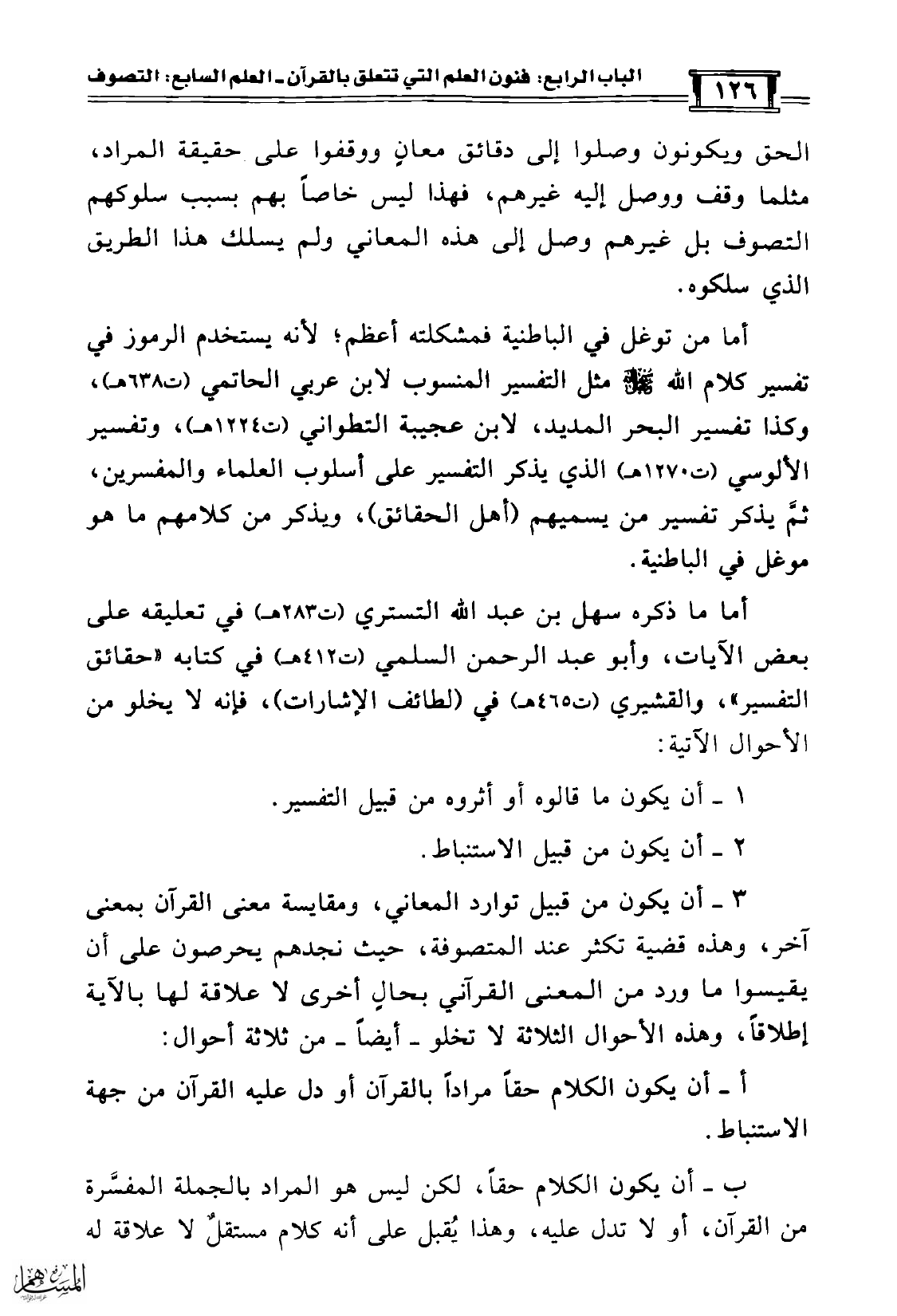 3 - أن يكون من قبيل توارد المعاني، ومقايسة معنى القرآن بمعنى آخر، وهذه قضية تكثر عند المتصوفة، حيث نجدهم يحرصون على أن يقيسوا ما ورد من المعنى القرآني بحالٍ أخرى لا علاقة لها بالآية إطلاقاً، وهذه الأحوال الثلاثة لا تخلو ـ أيضاً ـ من ثلاثة أحوال:
