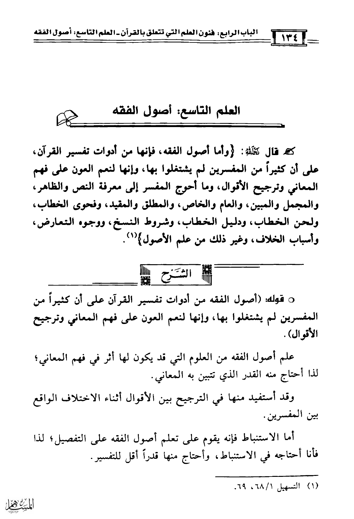 قوله: (أصول الفقه من أدوات تفسير القرآن على أن كثيراً من المفسرين لم يشتغلوا بها، وإنها لنعم العون على فهم المعاني وترجيح الأقوال).