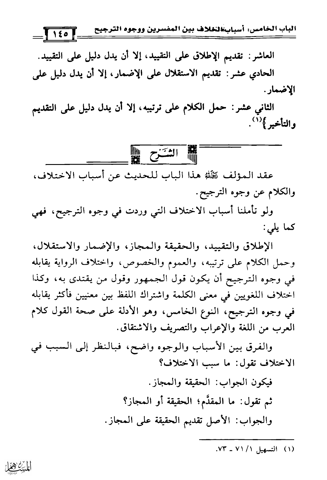 عقد المؤلف رحمه الله هذا الباب للحديث عن أسباب الاختلاف، والكلام عن وجوه الترجيح.