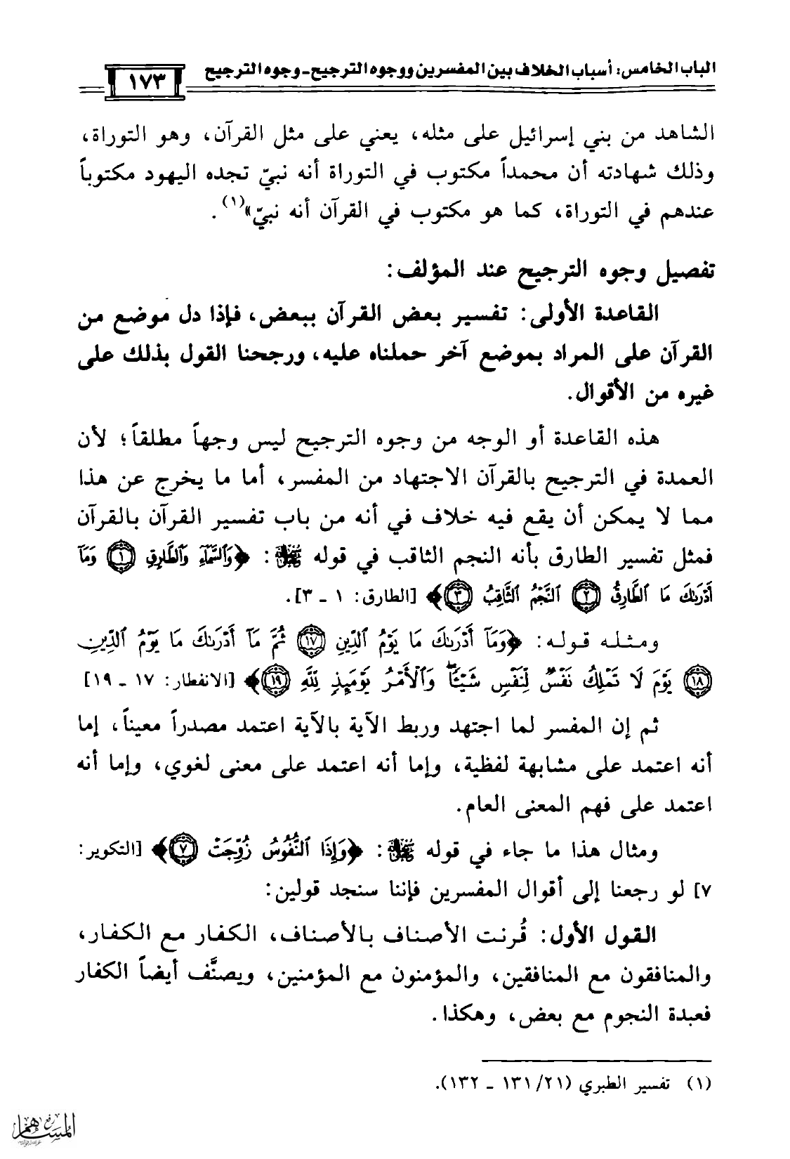 (¬1) تفسير الطبري (21/ 131 - 132).