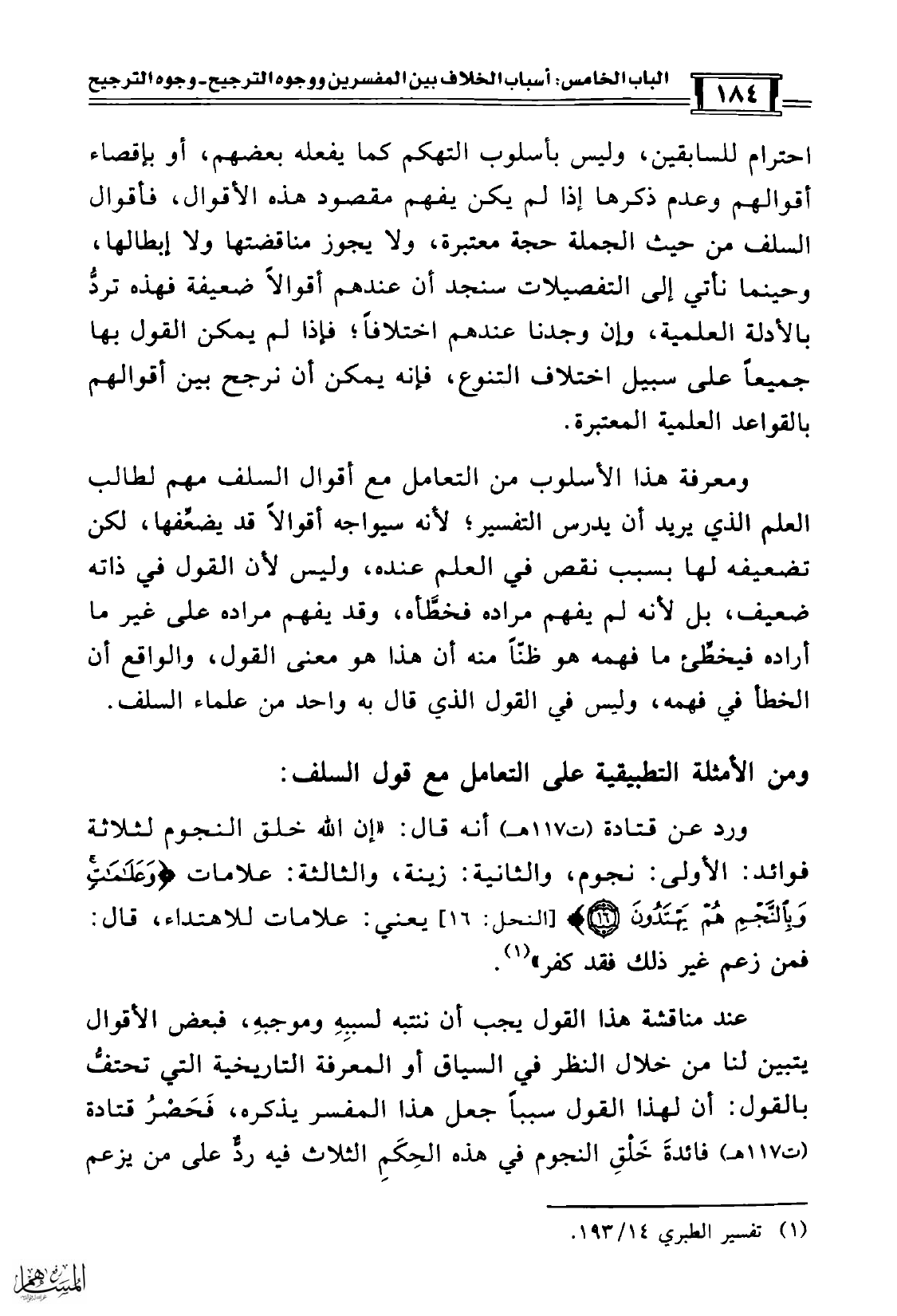 ومعرفة هذا الأسلوب من التعامل مع أقوال السلف مهم لطالب العلم الذي يريد أن يدرس التفسير؛ لأنه سيواجه أقوالاً قد يضعِّفها، لكن تضعيفه لها بسبب نقص في العلم عنده، وليس لأن القول في ذاته ضعيف، بل لأنه لم يفهم مراده فخطَّأه، وقد يفهم مراده على غير ما أراده فيخطِّئ ما فهمه هو ظنّاً منه أن هذا هو معنى القول، والواقع أن الخطأ في فهمه، وليس في القول الذي قال به واحد من علماء السلف.