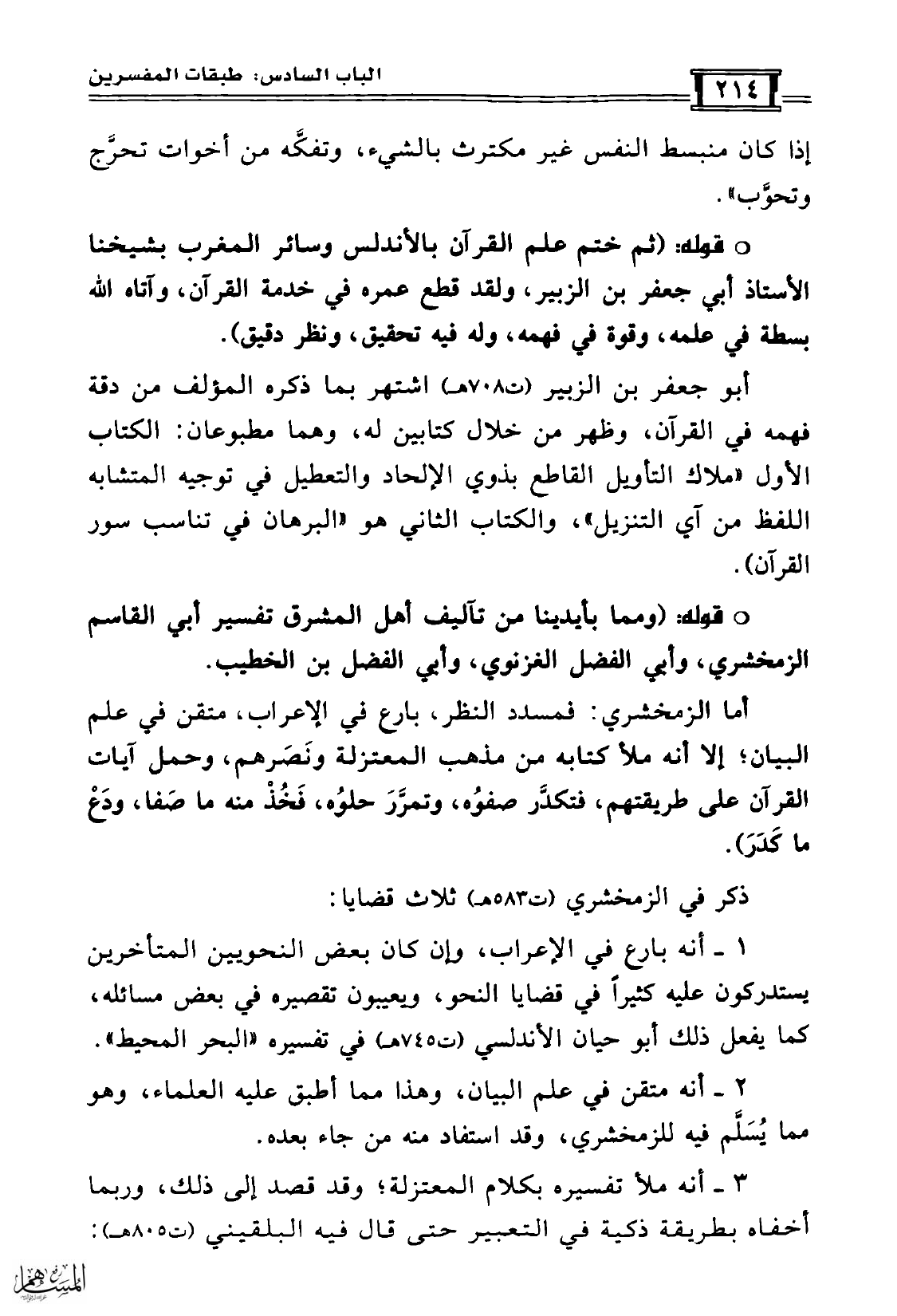 أبو جعفر بن الزبير (ت708هـ) اشتهر بما ذكره المؤلف من دقة فهمه في القرآن، وظهر من خلال كتابين له، وهما مطبوعان: الكتاب الأول «ملاك التأويل القاطع بذوي الإلحاد والتعطيل في توجيه المتشابه اللفظ من آي التنزيل»، والكتاب الثاني هو «البرهان في تناسب سور القرآن).