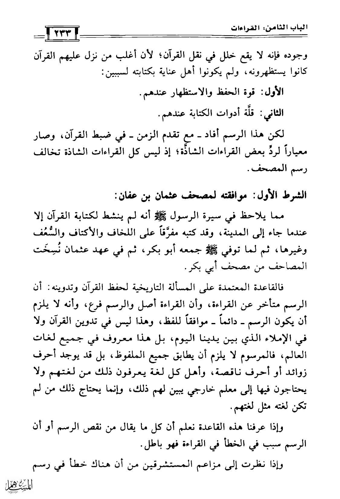 وإذا عرفنا هذه القاعدة نعلم أن كل ما يقال من نقص الرسم أو أن الرسم سبب في الخطأ في القراءة فهو باطل.