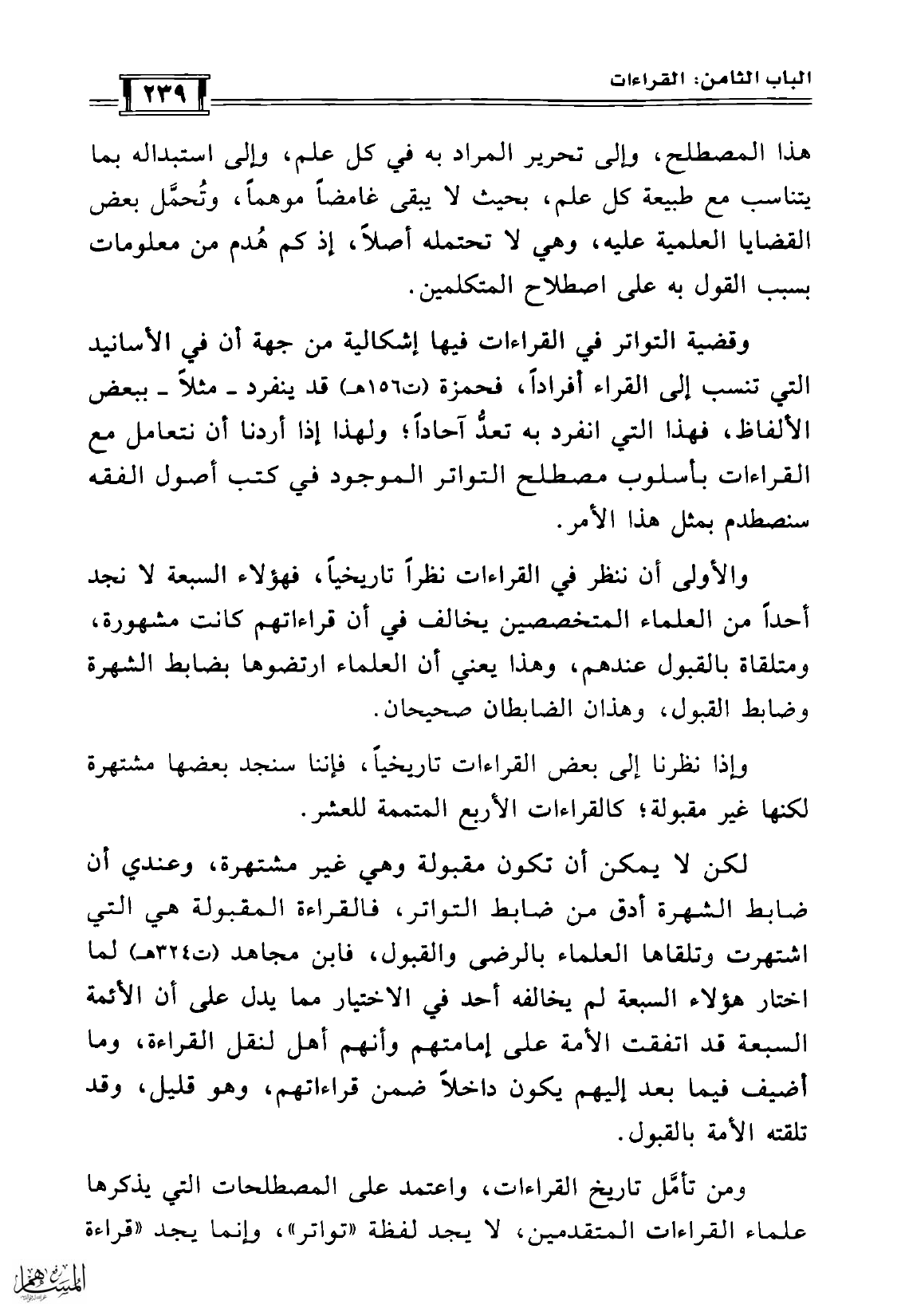 ومن تأمَّل تاريخ القراءات، واعتمد على المصطلحات التي يذكرها علماء القراءات المتقدمين، لا يجد لفظة «تواتر»، وإنما يجد «قراءة