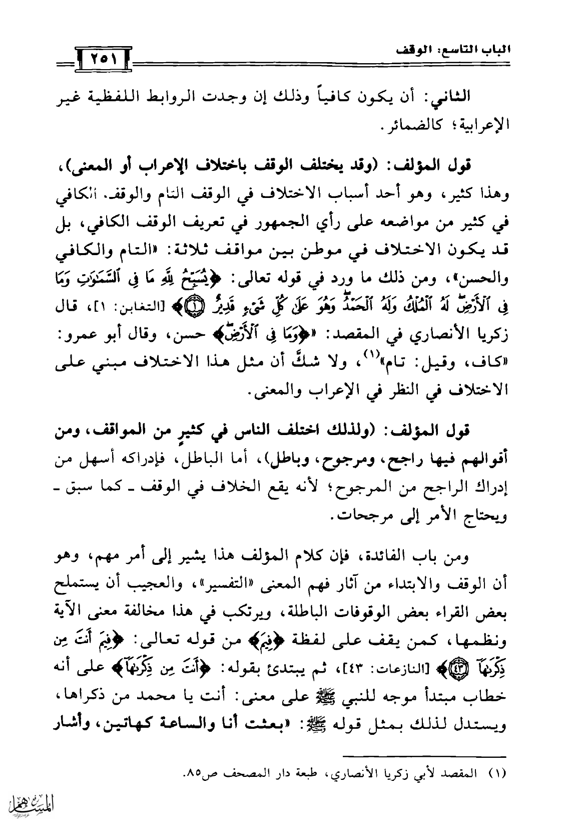 (¬1) المقصد لأبي زكريا الأنصاري، طبعة دار المصحف ص85.