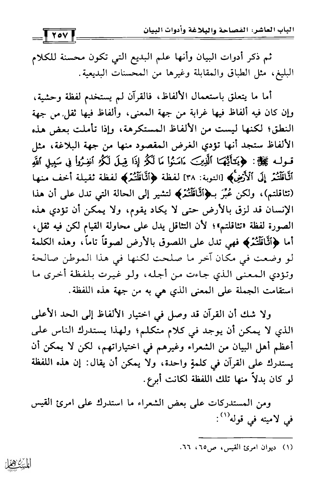 ولا شك أن القرآن قد وصل في اختيار الألفاظ إلى الحد الأعلى الذي لا يمكن أن يوجد في كلام متكلم؛ ولهذا يستدرك الناس على أعظم أهل البيان من الشعراء وغيرهم في اختياراتهم، لكن لا يمكن أن يستدرك على القرآن في كلمةٍ واحدة، ولا يمكن أن يقال: إن هذه اللفظة لو كان بدلاً منها تلك اللفظة لكانت أبرع.