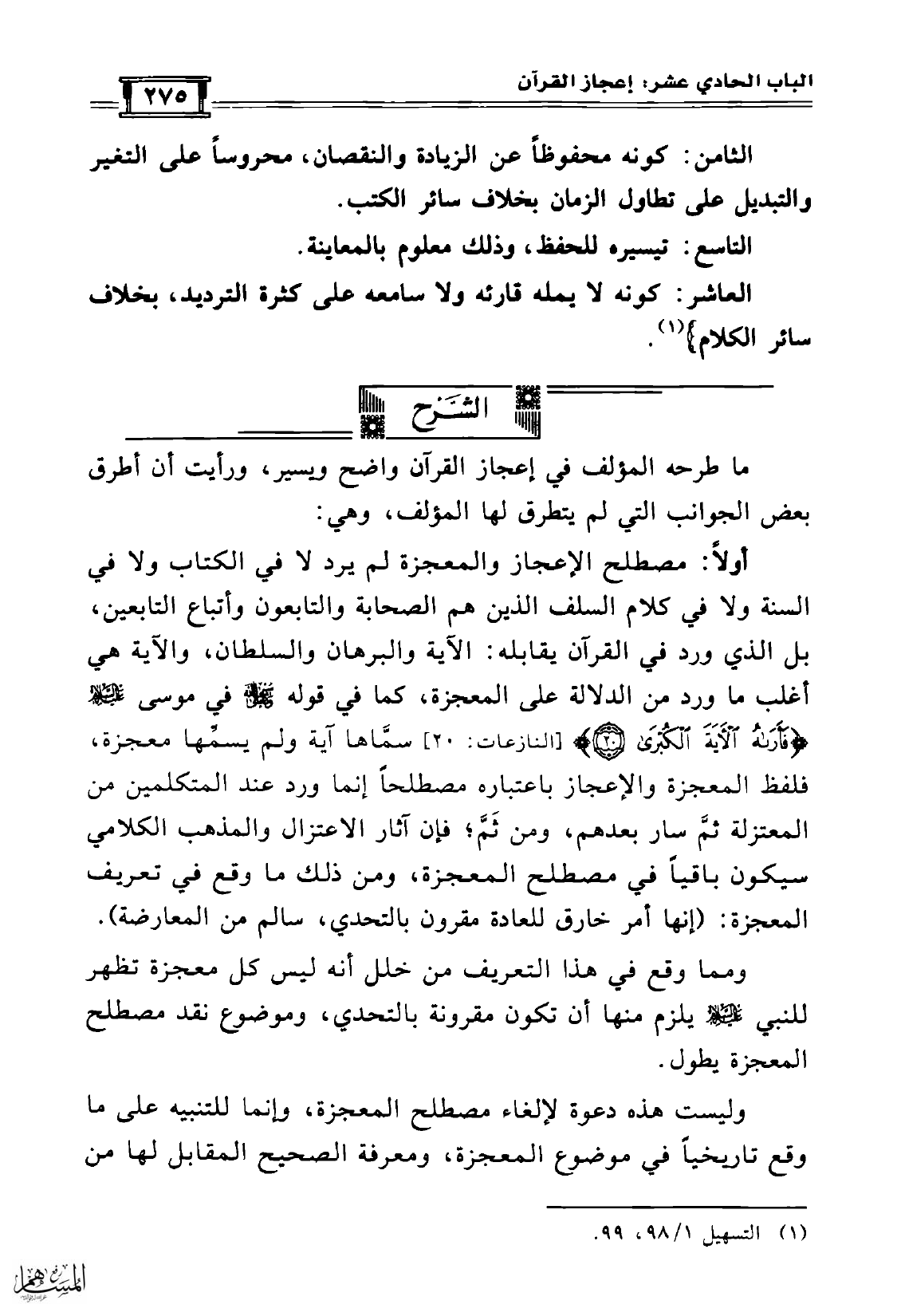 ما طرحه المؤلف في إعجاز القرآن واضح ويسير، ورأيت أن أطرق بعض الجوانب التي لم يتطرق لها المؤلف، وهي: