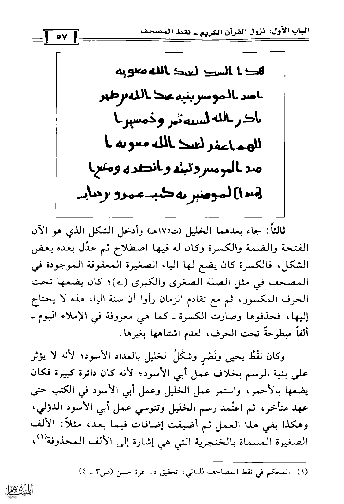 (¬1) المحكم في نقط المصاحف للداني، تحقيق د. عزة حسن (ص3 - 4).