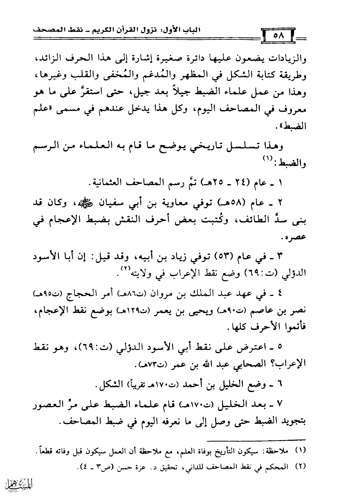 (¬2) المحكم في نقط المصاحف للداني، تحقيق د. عزة حسن (ص3 - 4).