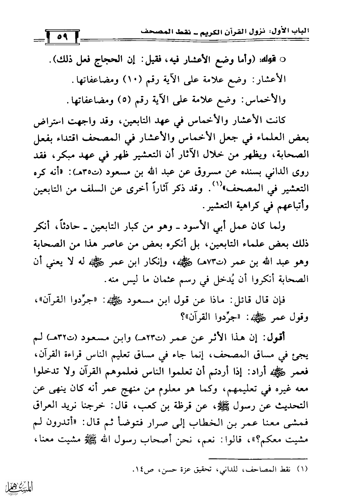 (¬1) نقط المصاحف، للداني، تحقيق عزة حسن، ص14.