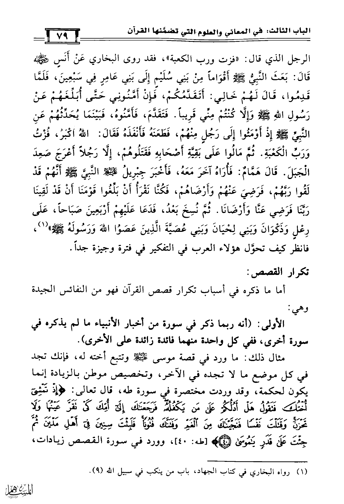 ثُمَّ نُسِخَ بَعْدُ، فَدَعَا عَلَيْهِمْ أَرْبَعِينَ صَبَاحاً، عَلَى رِعْلٍ وَذَكْوَانَ وَبَنِي لِحْيَانَ وَبَنِي عُصَيَّةَ الَّذِينَ عَصَوُا اللهَ وَرَسُولَهُ صلّى الله عليه وسلّم» (¬1)، فانظر كيف تحوَّل هؤلاء العرب في التفكير في فترة وجيزة جداً.