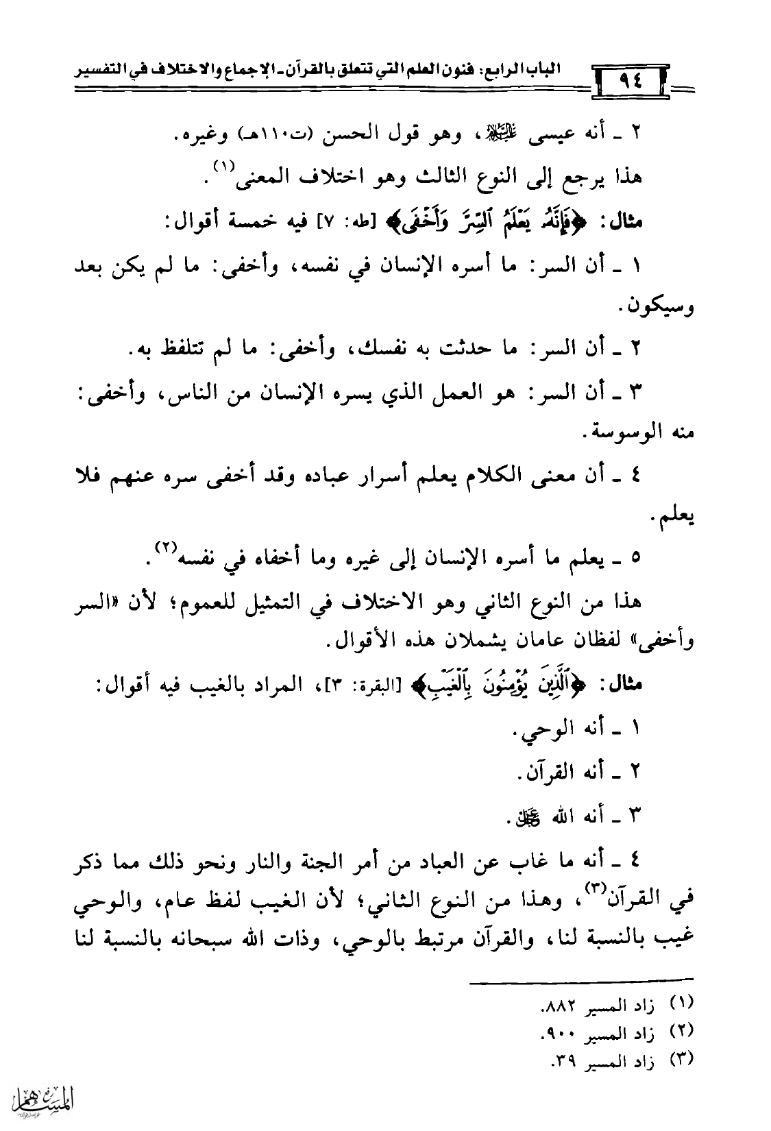 مثال: {فَإِنَّهُ يَعْلَمُ السِّرَّ وَأَخْفَى} [طه: 7] فيه خمسة أقوال: