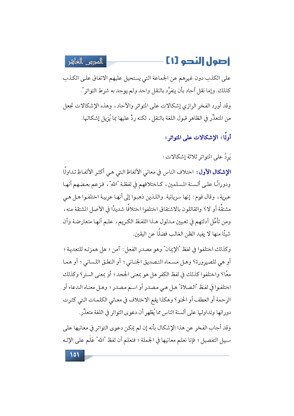 يَرِدُ على المتواتر ثلاثة إشكالات: