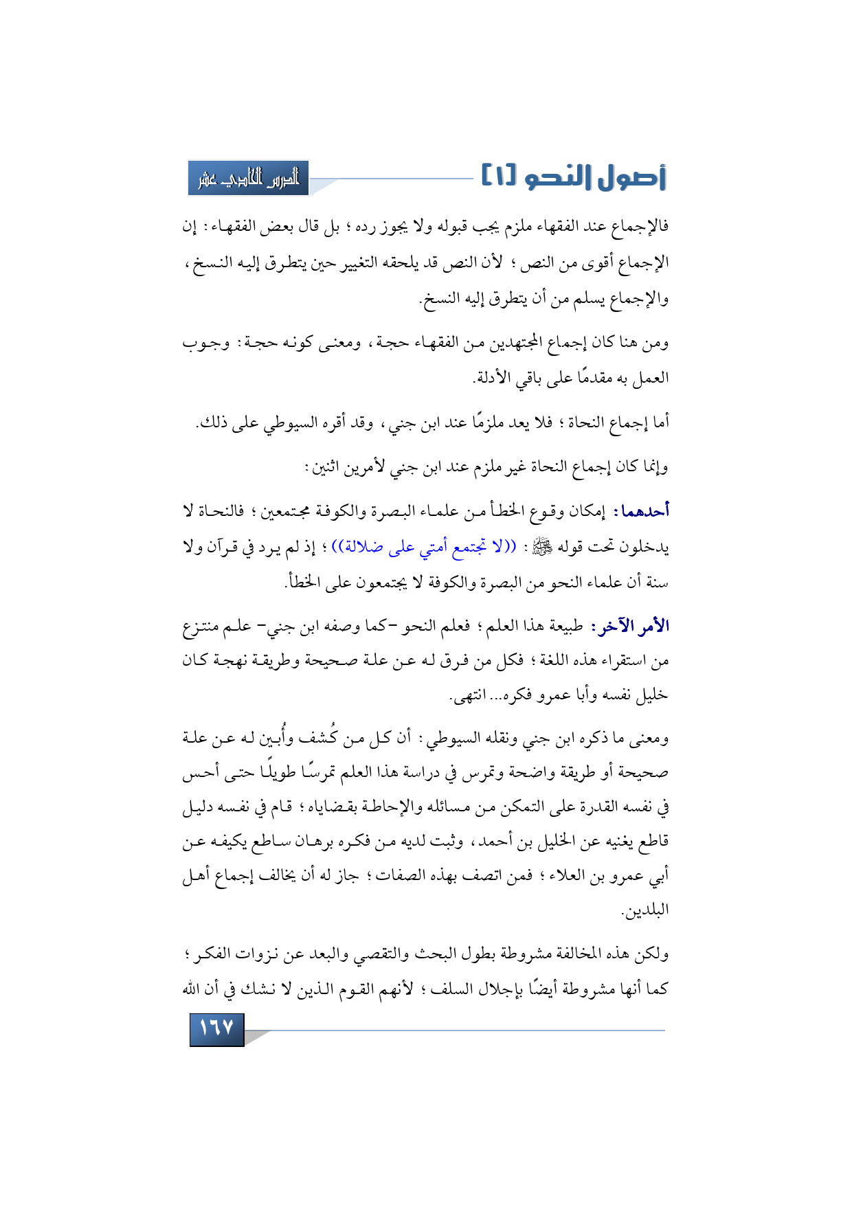 أما إجماع النحاة؛ فلا يعد ملزمًا عند ابن جني، وقد أقره السيوطي على ذلك.