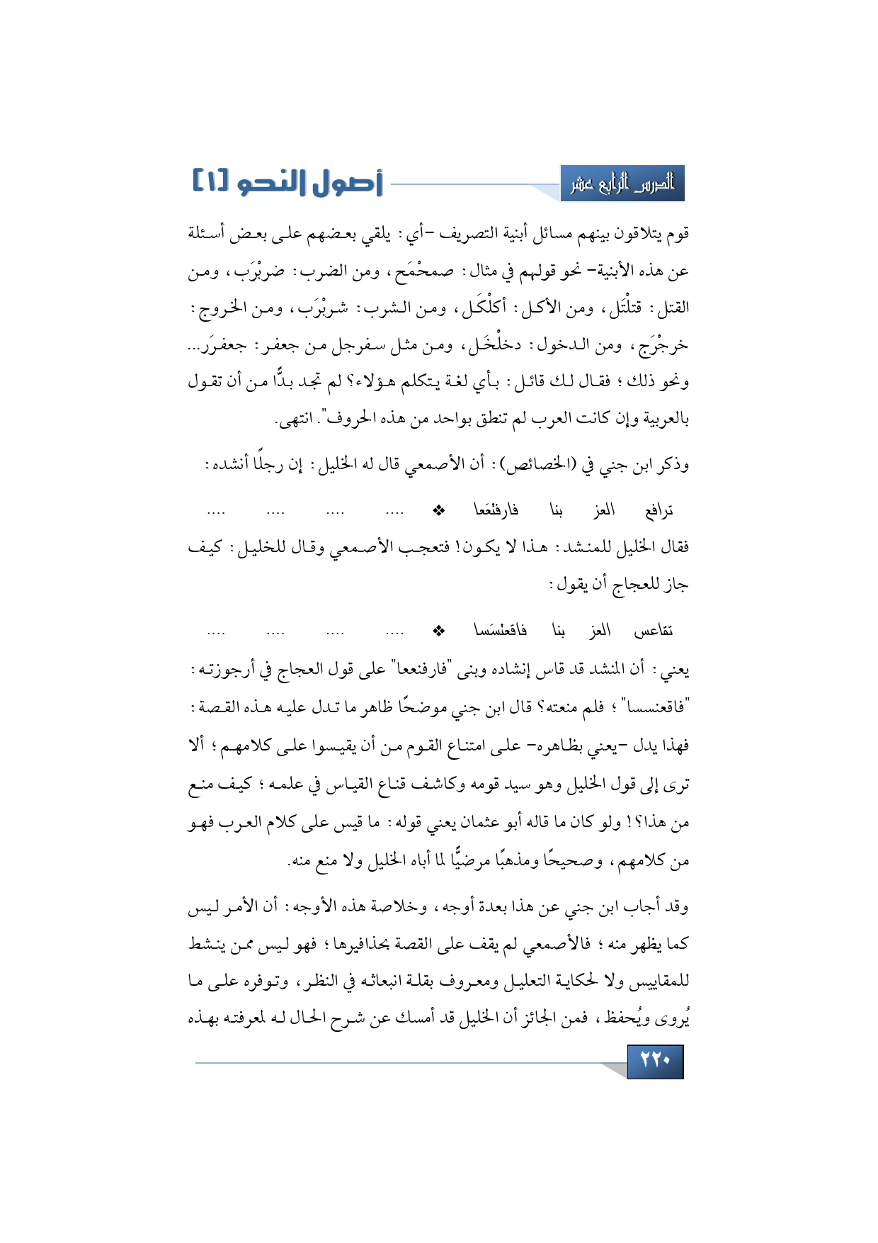 وذكر ابن جني في (الخصائص): أن الأصمعي قال له الخليل: إن رجلًا أنشده: