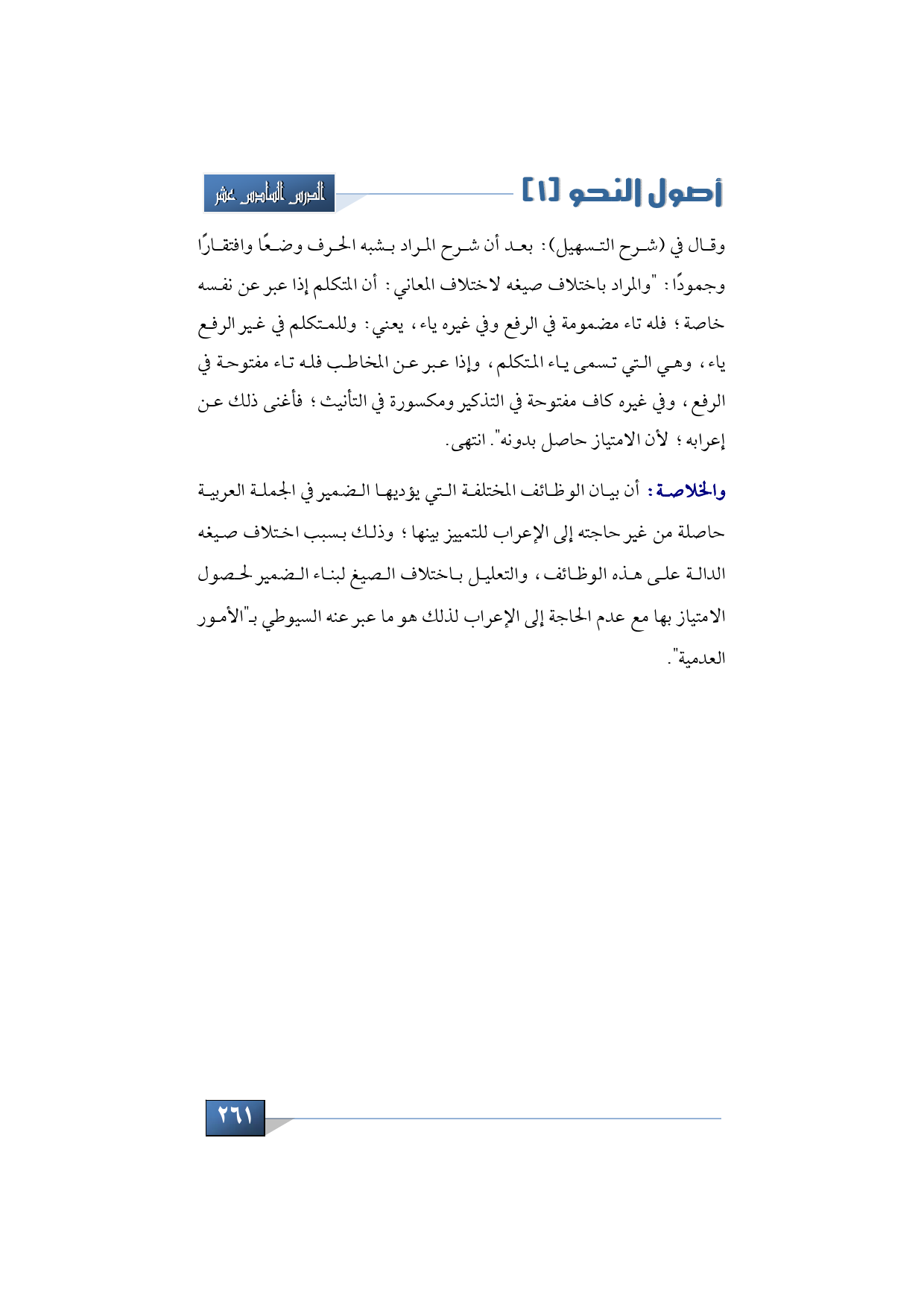 والخلاصة: أن بيان الوظائف المختلفة التي يؤديها الضمير في الجملة العربية حاصلة من غير حاجته إلى الإعراب للتمييز بينها؛ وذلك بسبب اختلاف صيغه الدالة على هذه الوظائف، والتعليل باختلاف الصيغ لبناء الضمير لحصول الامتياز بها مع عدم الحاجة إلى الإعراب لذلك هو ما عبر عنه السيوطي بـ"الأمور العدمية".