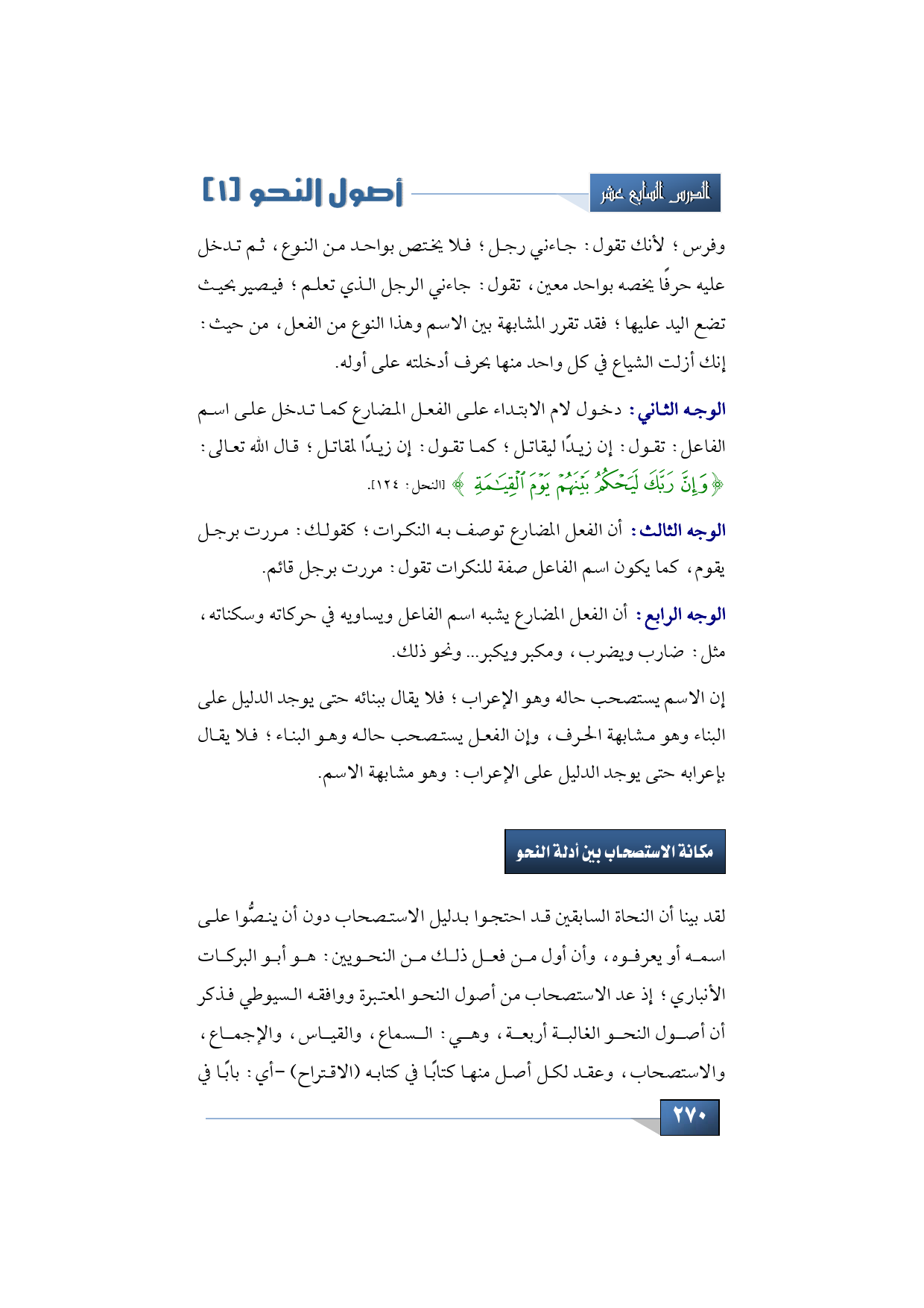 مكانة الاستصحاب بين أدلة النحو