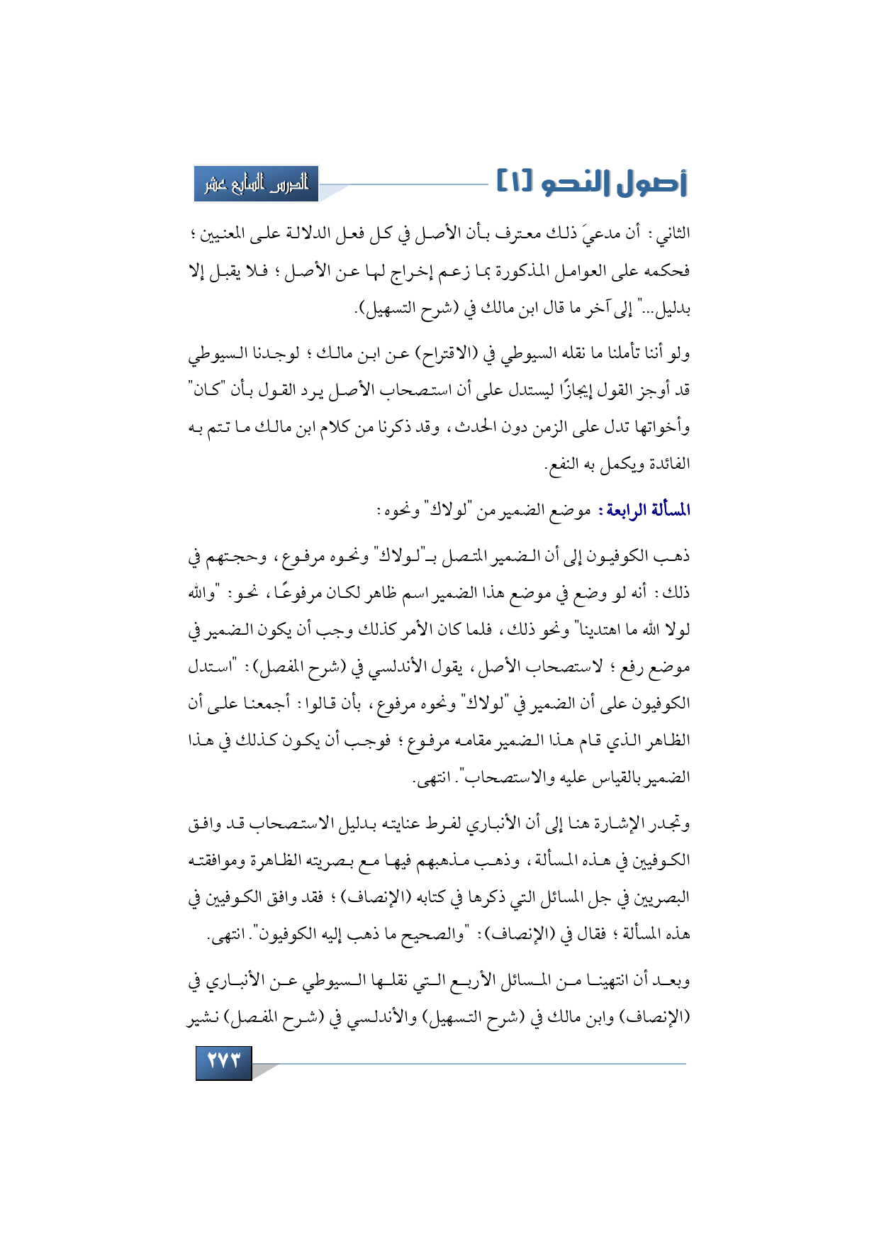 وبعد أن انتهينا من المسائل الأربع التي نقلها السيوطي عن الأنباري في (الإنصاف) وابن مالك في (شرح التسهيل) والأندلسي في (شرح المفصل) نشير