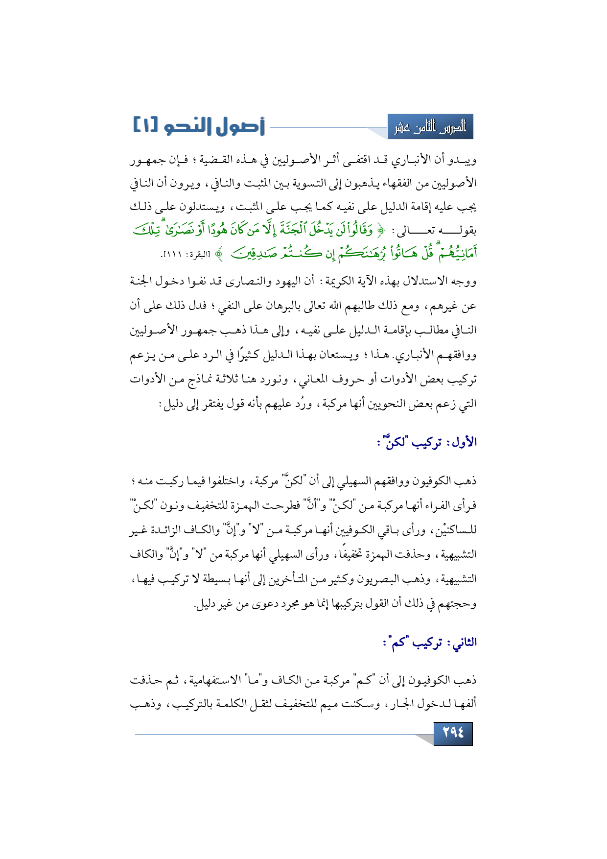 ووجه الاستدلال بهذه الآية الكريمة: أن اليهود والنصارى قد نفوا دخول الجنة عن غيرهم، ومع ذلك طالبهم الله تعالى بالبرهان على النفي؛ فدل ذلك على أن النافي مطالب بإقامة الدليل على نفيه، وإلى هذا ذهب جمهور الأصوليين ووافقهم الأنباري.
