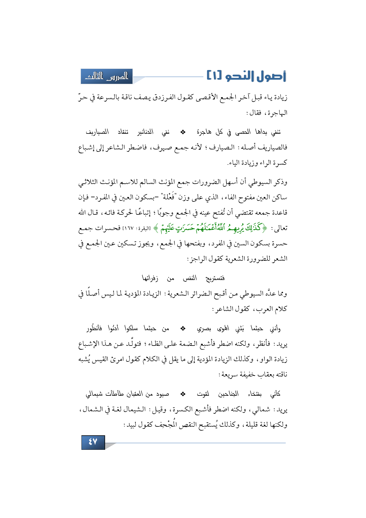 زيادة ياء قبل آخر الجمع الأقصى كقول الفرزدق يصف ناقة بالسرعة في حرّ الهاجرة، فقال: