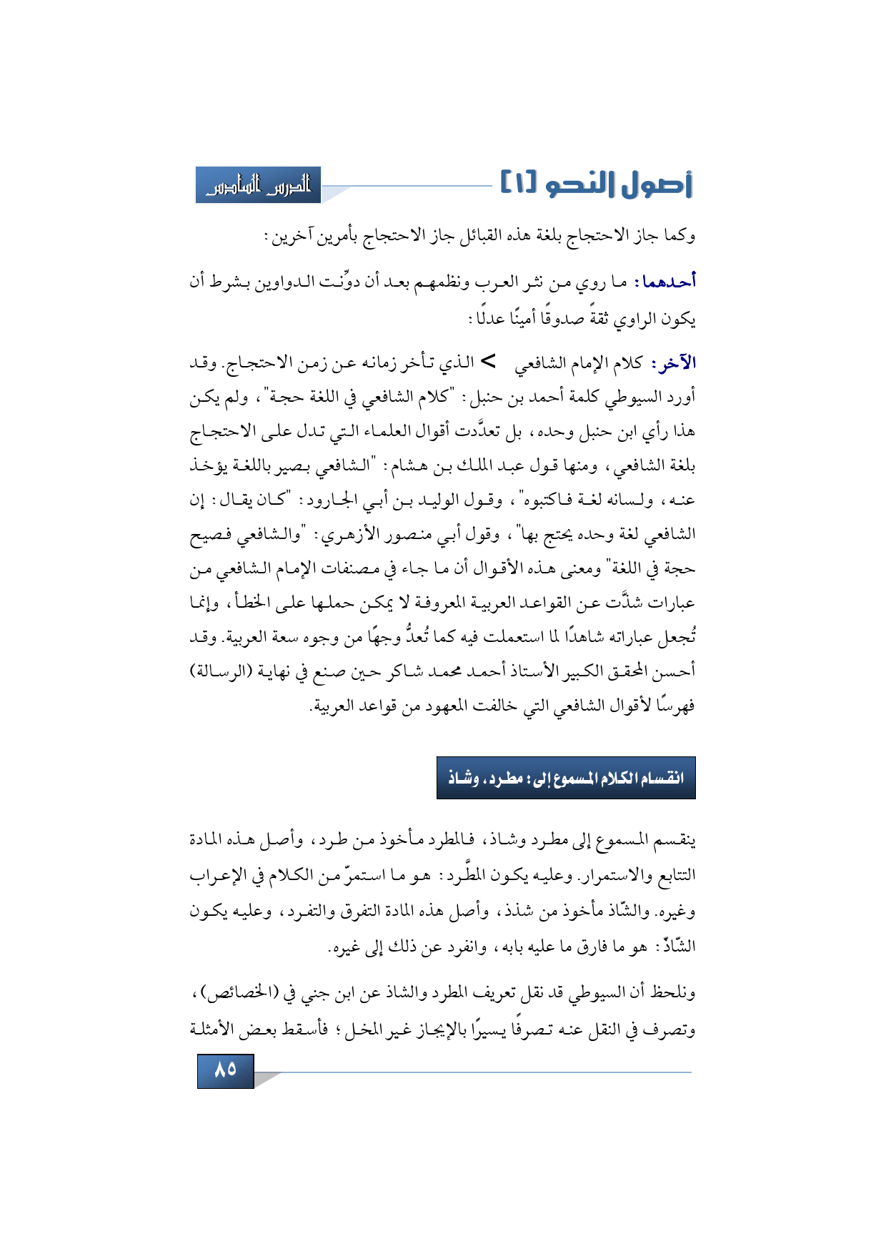 انقسام الكلام المسموع إلى: مطرد، وشاذ