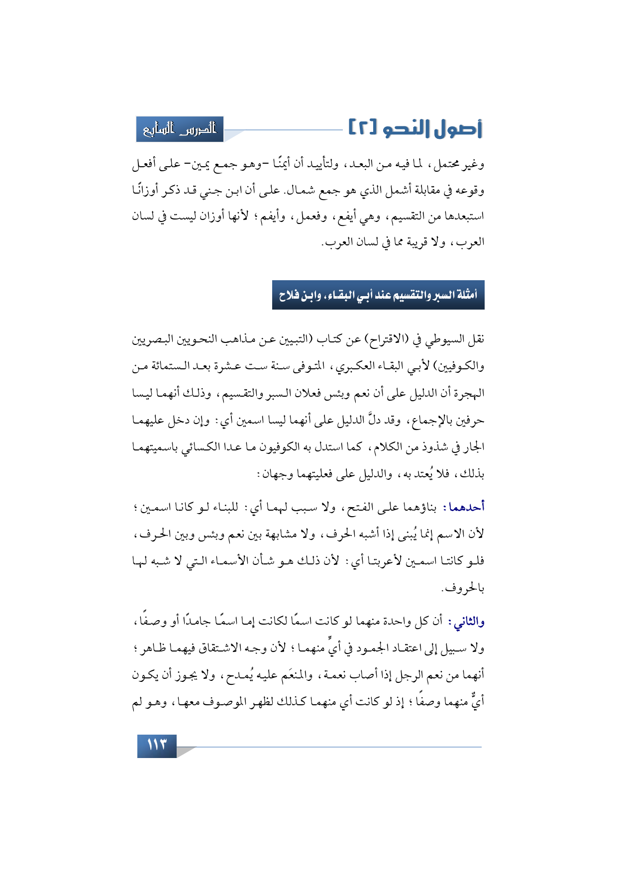 أمثلة السبر والتقسيم عند أبي البقاء، وابن فلاح