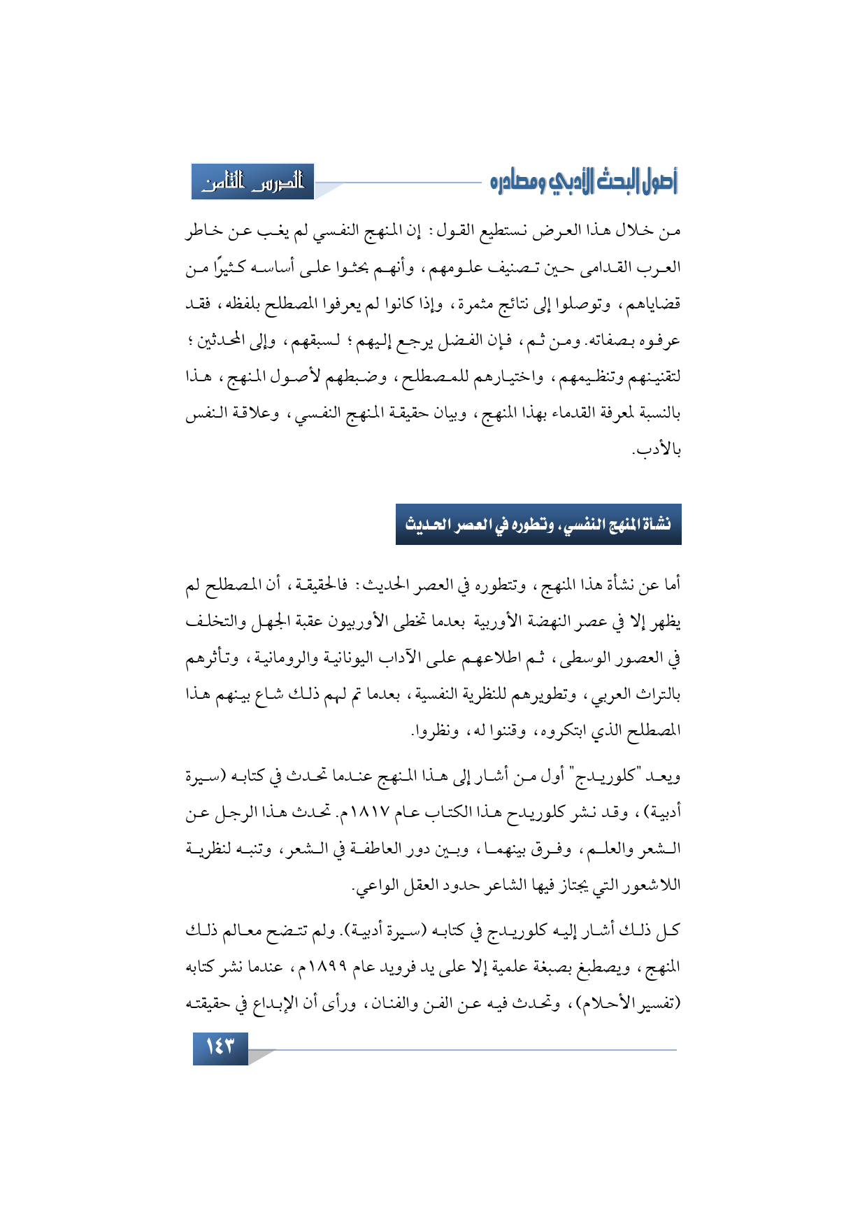 كل ذلك أشار إليه كلوريدج في كتابه (سيرة أدبية). ولم تتضح معالم ذلك المنهج، ويصطبغ بصبغة علمية إلا على يد فرويد عام 1899م، عندما نشر كتابه (تفسير الأحلام)، وتحدث فيه عن الفن والفنان، ورأى أن الإبداع في حقيقته