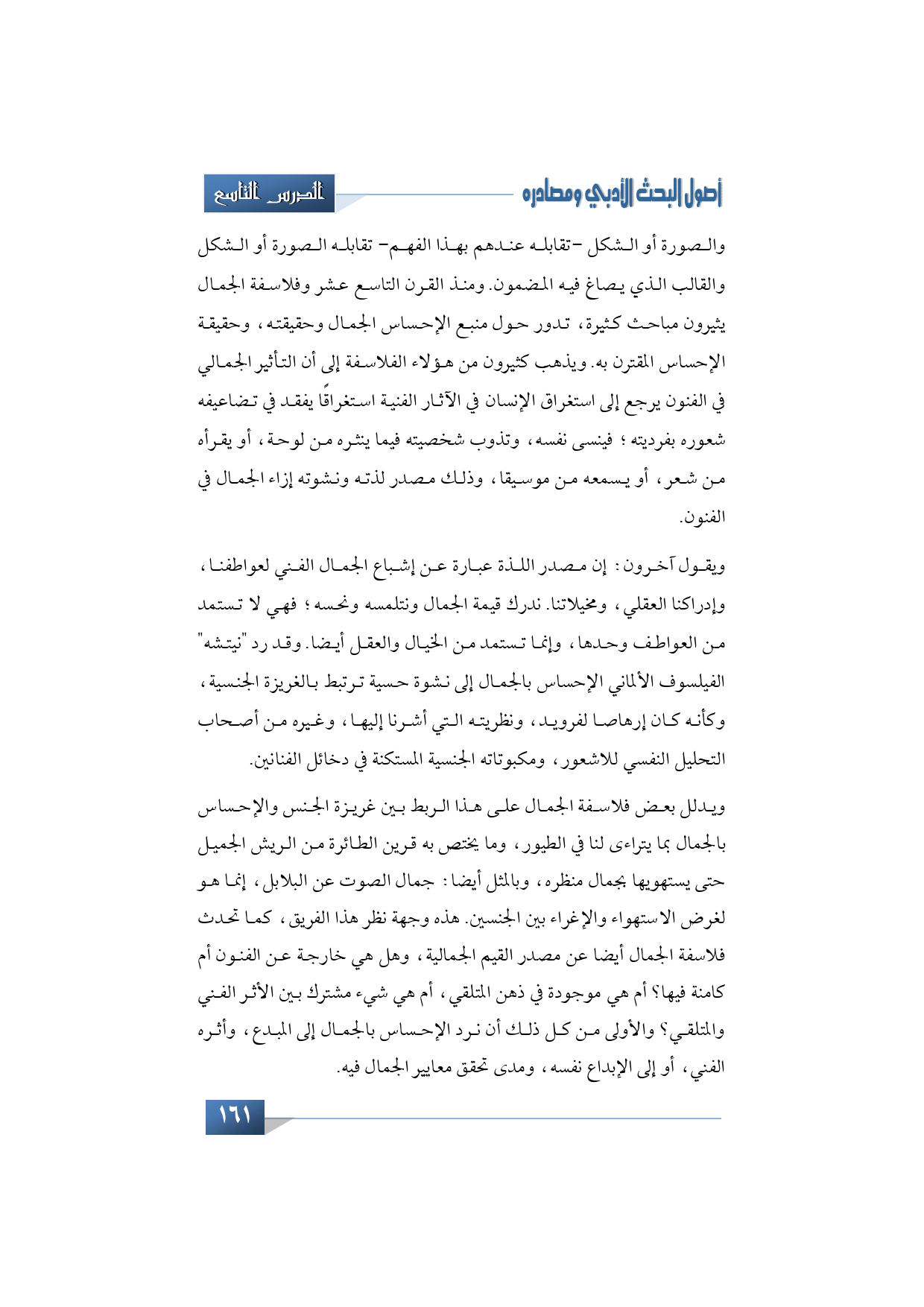 ويقول آخرون: إن مصدر اللذة عبارة عن إشباع الجمال الفني لعواطفنا، وإدراكنا العقلي، ومخيلاتنا. ندرك قيمة الجمال ونتلمسه ونحسه؛ فهي لا تستمد من العواطف وحدها، وإنما تستمد من الخيال والعقل أيضا. وقد رد "نيتشه" الفيلسوف الألماني الإحساس بالجمال إلى نشوة حسية ترتبط بالغريزة الجنسية، وكأنه كان إرهاصا لفرويد، ونظريته التي أشرنا إليها، وغيره من أصحاب التحليل النفسي للاشعور، ومكبوتاته الجنسية المستكنة في دخائل الفنانين.