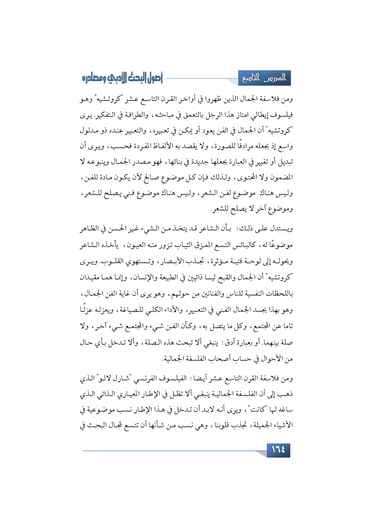 ومن فلاسفة الجمال الذين ظهروا في أواخر القرن التاسع عشر "كروتشيه" وهو فيلسوف إيطالي امتاز هذا الرجل بالتعمق في مباحثه، والطرافة في التفكير. يرى "كروتشيه" أن الجمال في الفن يعود أو يمكن في تعبيره، والتعبير عنده ذو مدلول واسع إذ يجعله مرادفا للصورة، ولا يقصد به الألفاظ المفردة فحسب، ويرى أن تبديل أو تغيير في العبارة يجعلها جديدة في بنائها، فهو مصدر الجمال وينبوعه لا المضمون ولا المحتوى، ولذلك فإن كل موضوع صالح لأن يكون مادة للفن، وليس هناك موضوع لفن الشعر، وليس هناك موضوع فني يصلح للشعر، وموضوع آخر لا يصلح للشعر.