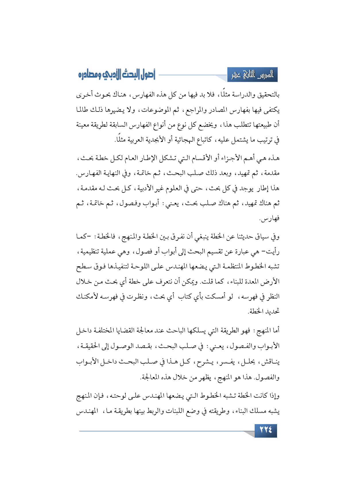 وإذا كانت الخطة تشبه الخطوط التي يضعها المهندس على لوحته، فإن المنهج يشبه مسلك البناء، وطريقته في وضع اللبنات والربط بينها بطريقة ما، المهندس
