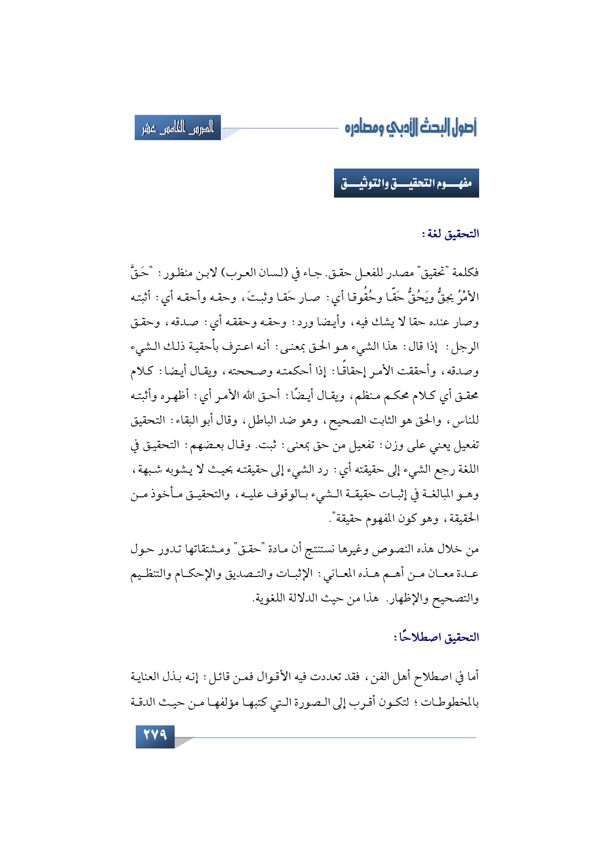 (مفهوم التحقيق والتوثيق وشروط المحقق)