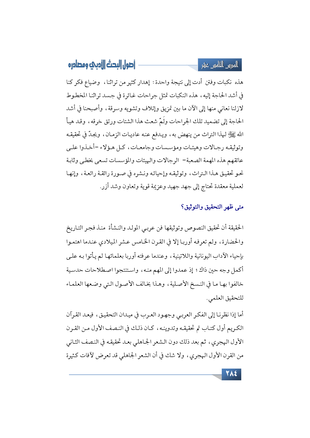 متى ظهر التحقيق والتوثيق؟ الحقيقة أن تحقيق النصوص وتوثيقها فن عربي المولد والنشأة منذ فجر التاريخ والحضارة، ولم تعرفه أوربا إلا في القرن الخامس عشر الميلادي عندما اهتموا بإحياء الآداب اليونانية واللاتينية، وعندما عرفته أوربا بعلمائها لم يأتوا به على أكمل وجه حين ذاك؛ إذ عمدوا إلى المهم منه، واستنتجوا اصطلاحات حدسية خالفوا بها ما في النسخ الأصلية، وهذا يخالف الأصول التي وضعها العلماء للتحقيق العلمي.