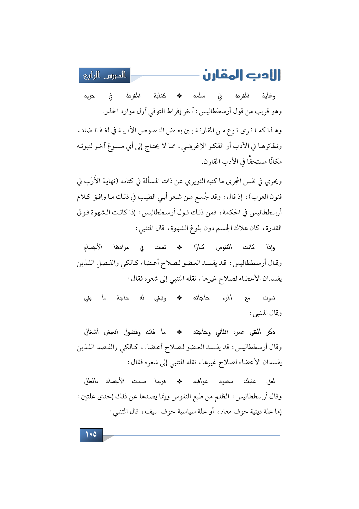 وهذا كما نرى نوع من المقارنة بين بعض النصوص الأدبية في لغة الضاد، ونظائرها في الأدب أو الفكر الإغريقي، مما لا يحتاج إلى أي مسوغ آخر لتبوئه مكانًا مستحقًّا في الأدب المقارن.
