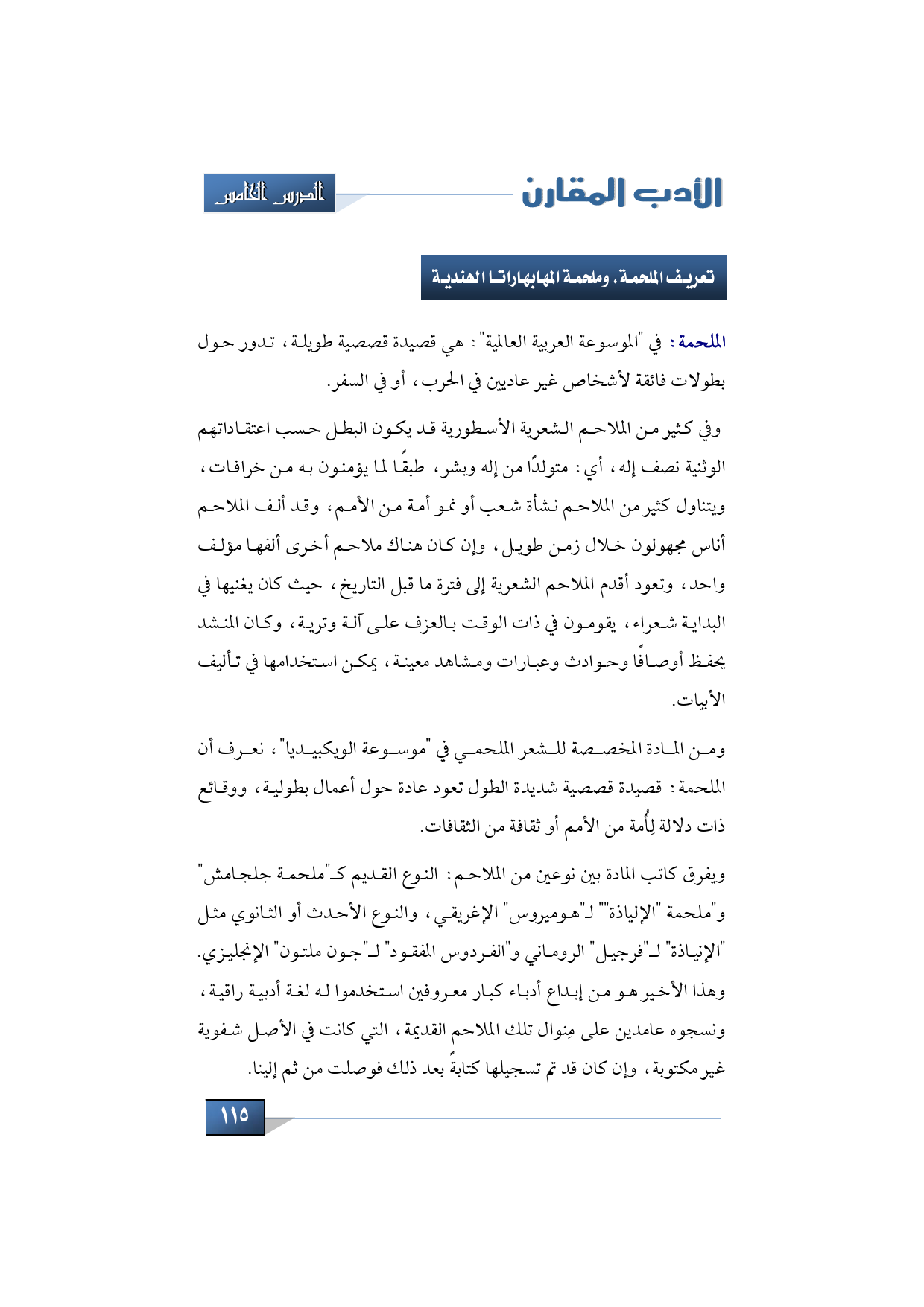 تعريف الملحمة، وملحمة المهابهاراتا الهندية